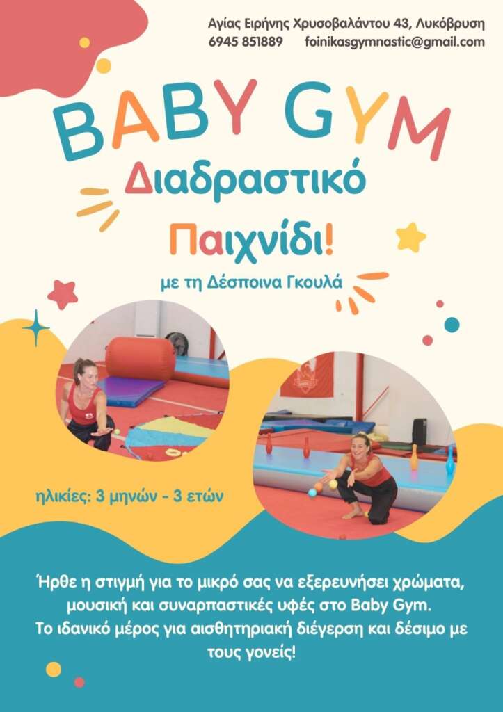 Ένα μοναδικό πρόγραμμα για παιδιά από 3 μηνών έως 12 μηνών και από 1 έτους έως 3 ετών δημιουργήθηκε στον Φοίνικα! Στόχος είναι η ανάπτυξη των βασικών δεξιοτήτων στα αρχικά στάδια ανάπτυξης! Διαδραστικά παιχνίδια, αισθητηριακή διέγερση και χρόνος σύνδεσης με τους γονείς! Υπεύθυνη του προγράμματος η Expert Coach, Despina Goula, με πολλά χρόνια εμπειρίας στο συγκεκριμμένο πρόγραμμα στην Ουαλία! Μια μοναδική απόλαυση για κάθε γονέα, να κάνει γυμναστική μαζί με το παιδί του!